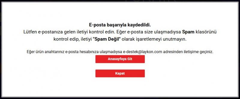 E-posta adresinize gelen e-postada KEY (Lisans Anahtarı) bilgisi yer almaktadır. İlgili lisans anahtarını kopyalayınız.