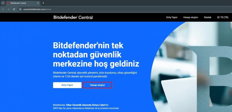 Sayfa otomatik bir şekilde yüklenmediyse ilgili bağlantıdan ulaşabilirsiniz. https://central.bitdefender.com/home