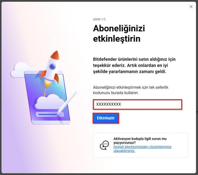 E-posta adresinizden daha önce kopyaladığınız lisans anahtarını ilgili kısma girerek “ETKİNLEŞTİR” butonuna basarak lisansınızı aktifleştiriniz.